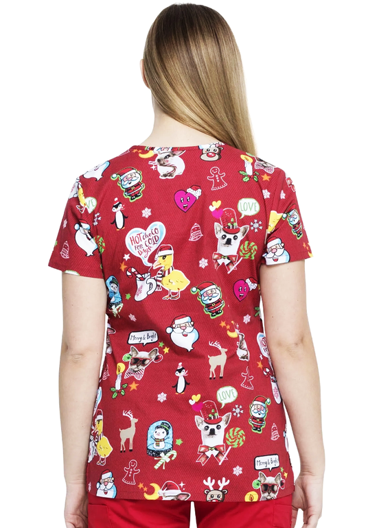 Dickies V-Neck Print Top - Hello Christmas