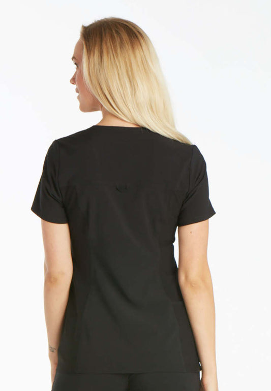V-Neck Knit Panel Solid Scrub Top - Ciel