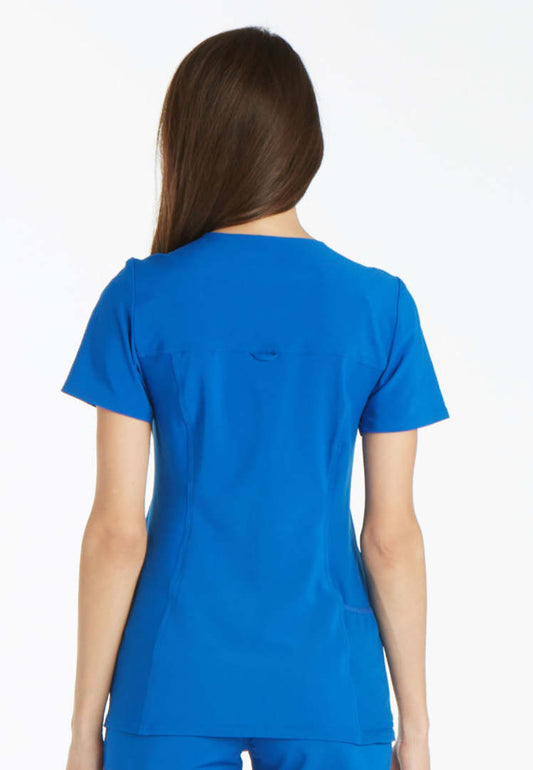 V-Neck Knit Panel Solid Scrub Top - Royal Blue