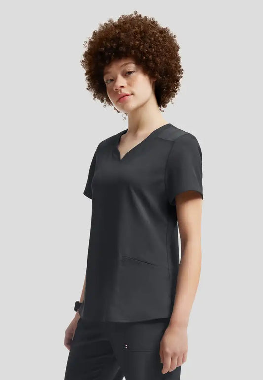 Vibe 2-Pocket V-Neck Scrub Top - Black