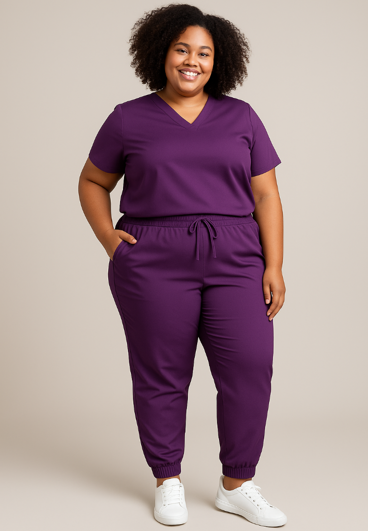 Stay supported and stylish throughout your shift with our collection of plus size jogger scrub pants. Designed for comfort and mobility, these joggers offer a tapered fit, soft elastic waistbands, and plenty of stretch to move with you - not against you.