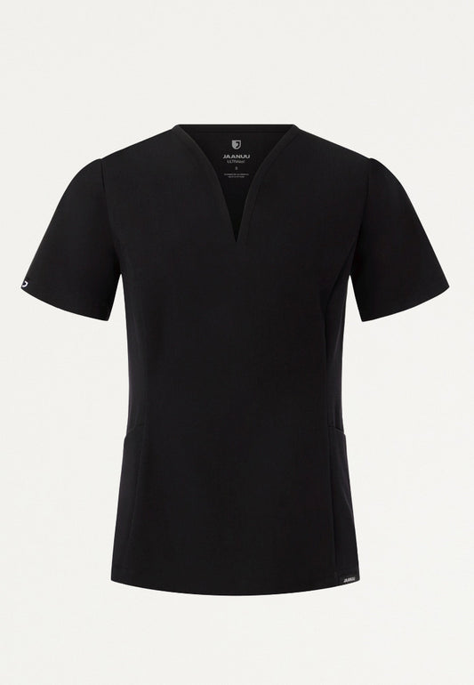 Blusa médica con cuello en V y muescas Helia - Negra