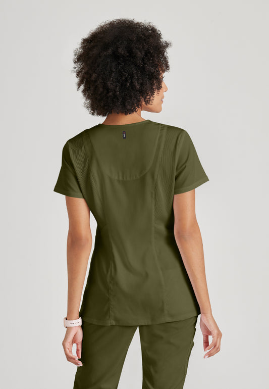 Blusa médica acanalada de 3 bolsillos Serena - Verde oliva