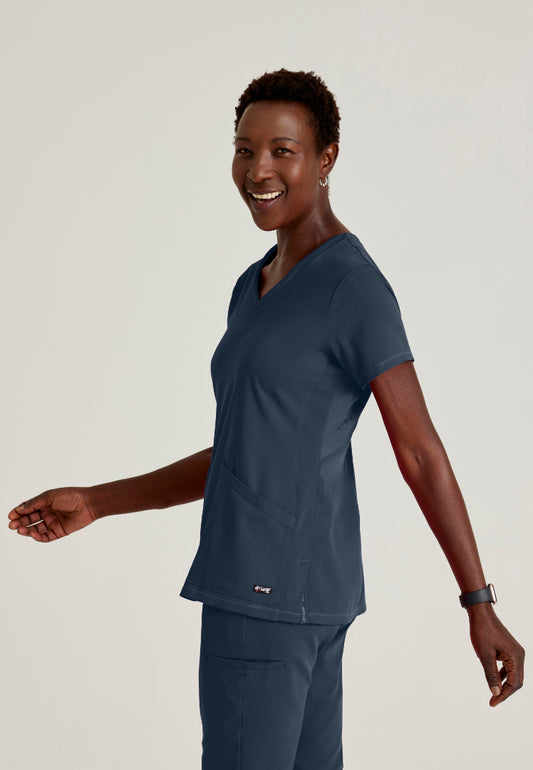 Blusa médica acanalada de 3 bolsillos Serena - Índigo