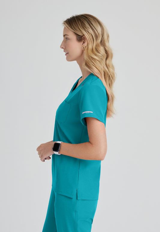 Blusa Dignity con un solo bolsillo y detalle de pliegues - Verde azulado