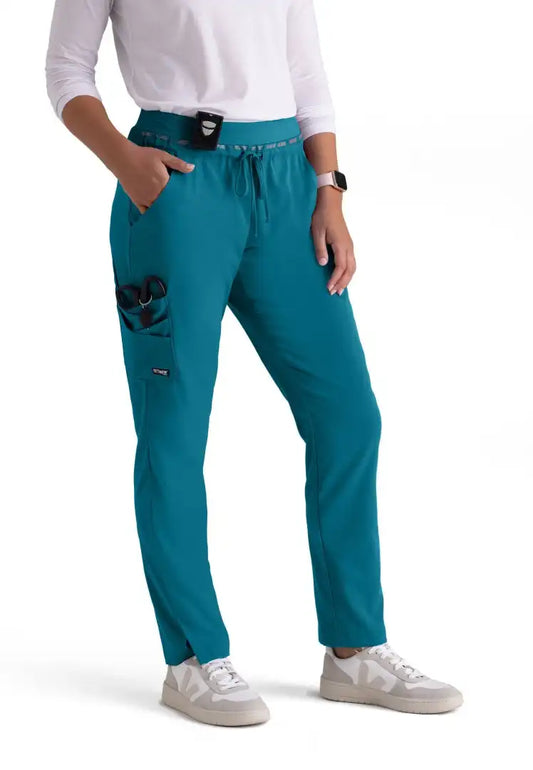Pantalón médico Serena de tiro medio y pernera cónica con 7 bolsillos - Verde azulado