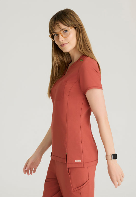 Blusa médica Breeze con cuello en V - Peltre
