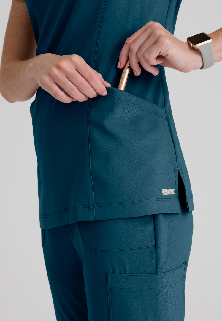 The Grey’s Anatomy Evolve Sky Banded Neck 2-Pocket Top in Bahama delivers fresh, lively colour with a flattering, structured silhouette. The bright turquoise shade adds cheerful energy to the classic fit, while princess seams and a notched neckline provide polish and shape.