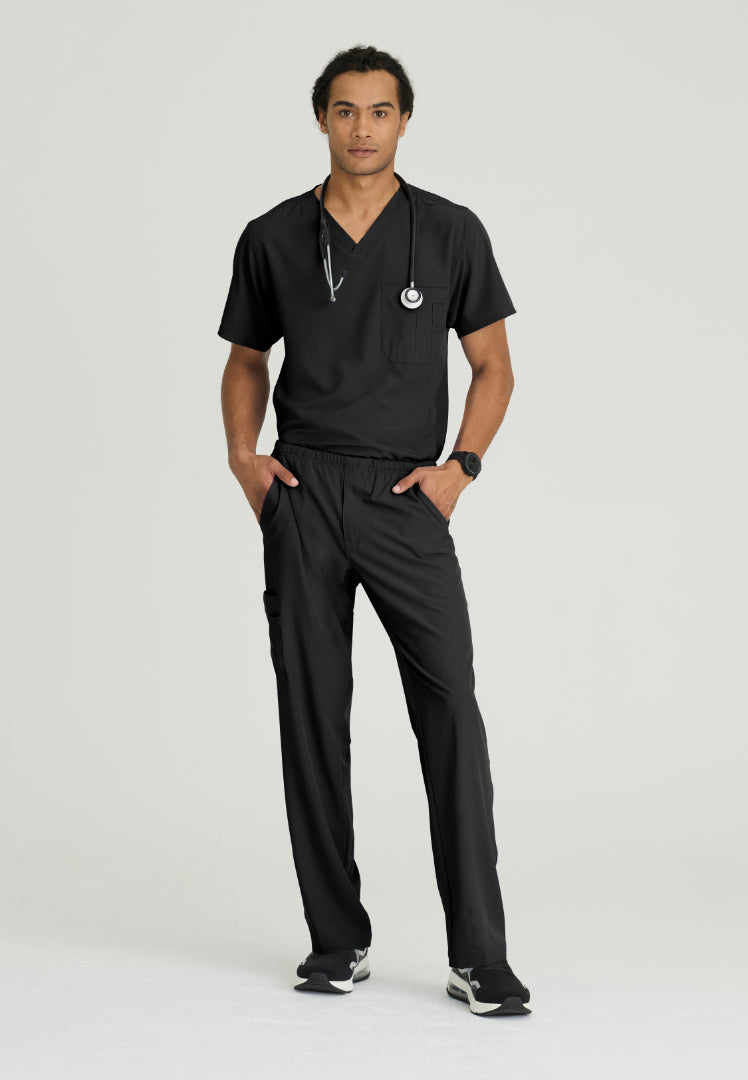 La blusa médica Skechers by Barco Structure con cuello en V para hombre en negro clásico ofrece sofisticación profesional con tecnología revolucionaria de confort sostenible. Esta moderna blusa médica combina la elegancia atemporal del negro con innovación ecológica, con un tejido elástico de 4 direcciones de vanguardia, confeccionado con fibra reciclada de 7 botellas de plástico por prenda.