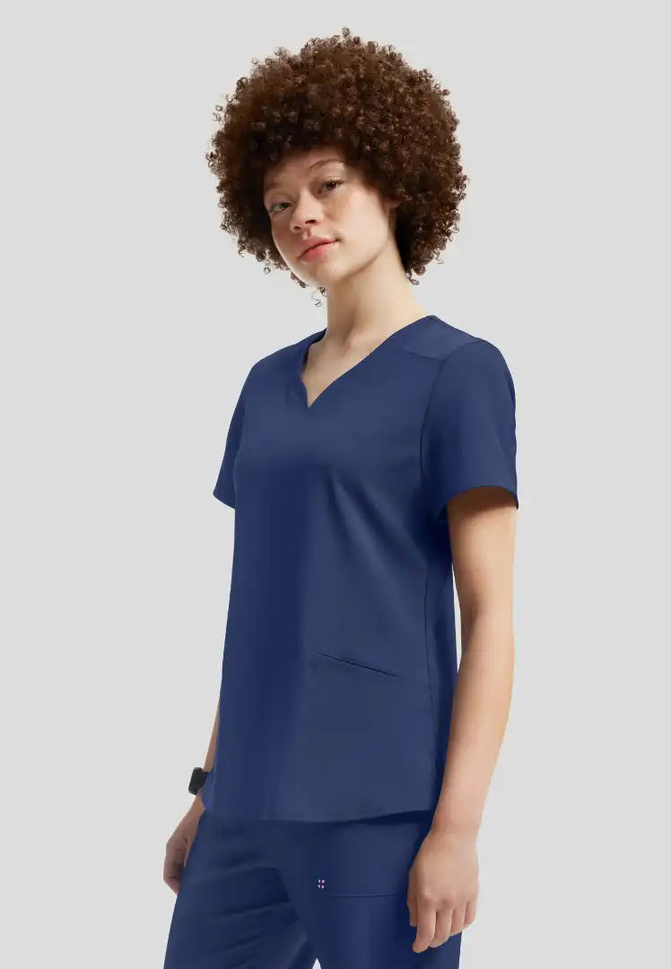 Vibe 2-Pocket V-Neck Scrub Top - Navy