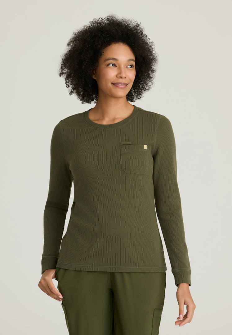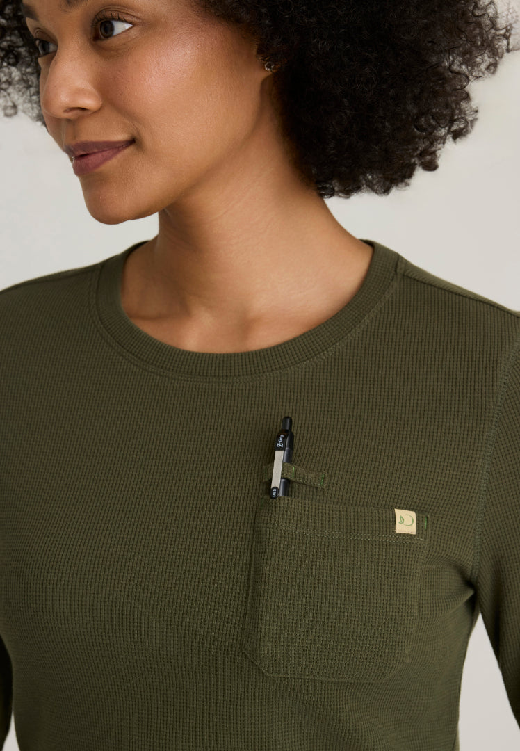 La camiseta de manga larga Wanderlust para mujer de Greys Anatomy by Barco Evolve en un refrescante color helecho aporta vitalidad natural y energía curativa a su uniforme médico con tecnología innovadora y cómoda que mejora su experiencia diaria en el cuidado de la salud. Esta rejuvenecedora camiseta quirúrgica está confeccionada con un tejido elástico de 360 ​​grados que proporciona una libertad de movimiento excepcional, permitiéndole brindar una atención compasiva con total facilidad.