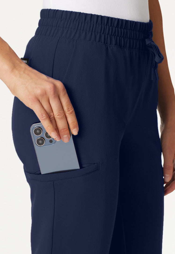 El intenso color Azul Marino Medianoche transmite una competencia y confiabilidad inquebrantables, consolidando su credibilidad y combinando a la perfección con las blusas médicas JAANUU UltraLAST™ para un conjunto cohesivo y con autoridad. El diseño de tiro medio con cintura y puños elásticos proporciona un ajuste seguro y cómodo que mantiene una apariencia profesional durante procedimientos médicos intensivos.