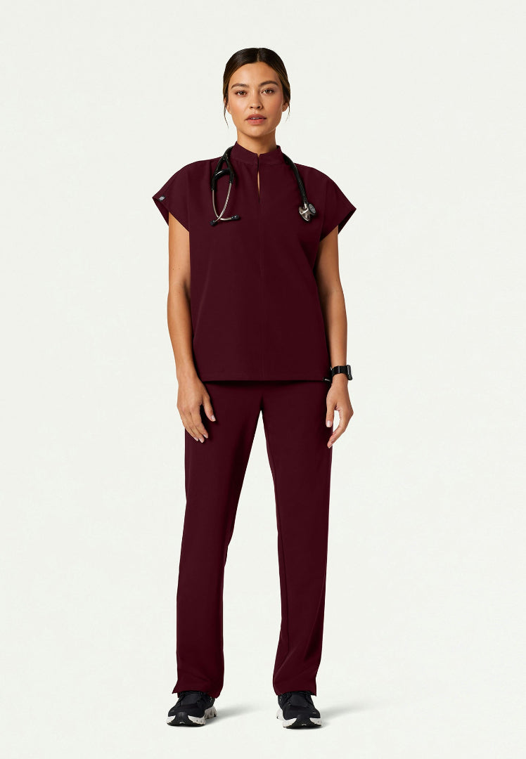 Diseñado para combinar perfectamente con las blusas médicas JAANUU UltraLAST™, este Kerr 365 color burdeos crea un conjunto sofisticado que demuestra su atención a los detalles al tiempo que proporciona la comodidad excepcional que mejora su capacidad de brindar atención médica personalizada y experta con calidez y distinción profesional.