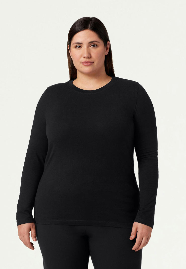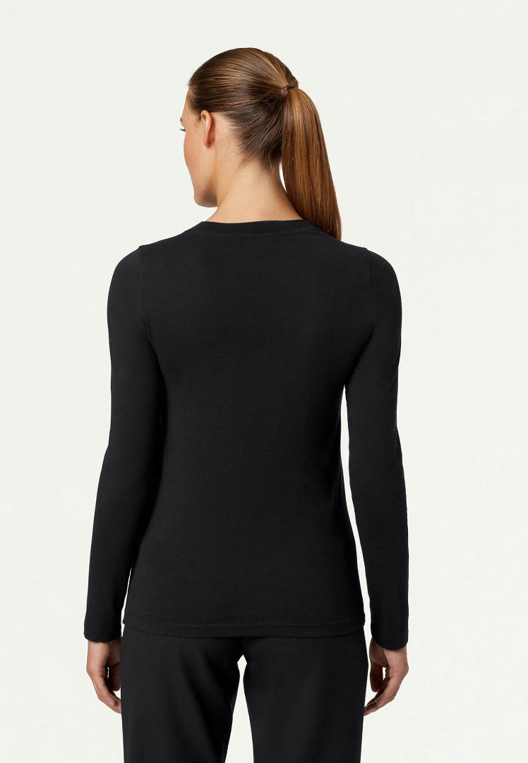 La camiseta interior de algodón Regen Cotton de Jaanuu para mujer en color negro ofrece comodidad y rendimiento premium para profesionales de la salud que exigen lo mejor en sus capas de base. Confeccionada con 100 % algodón orgánico regenerativo certificado, esta camiseta de manga larga ultrasuave revoluciona la comodidad de la ropa interior con materiales sostenibles de alto rendimiento.