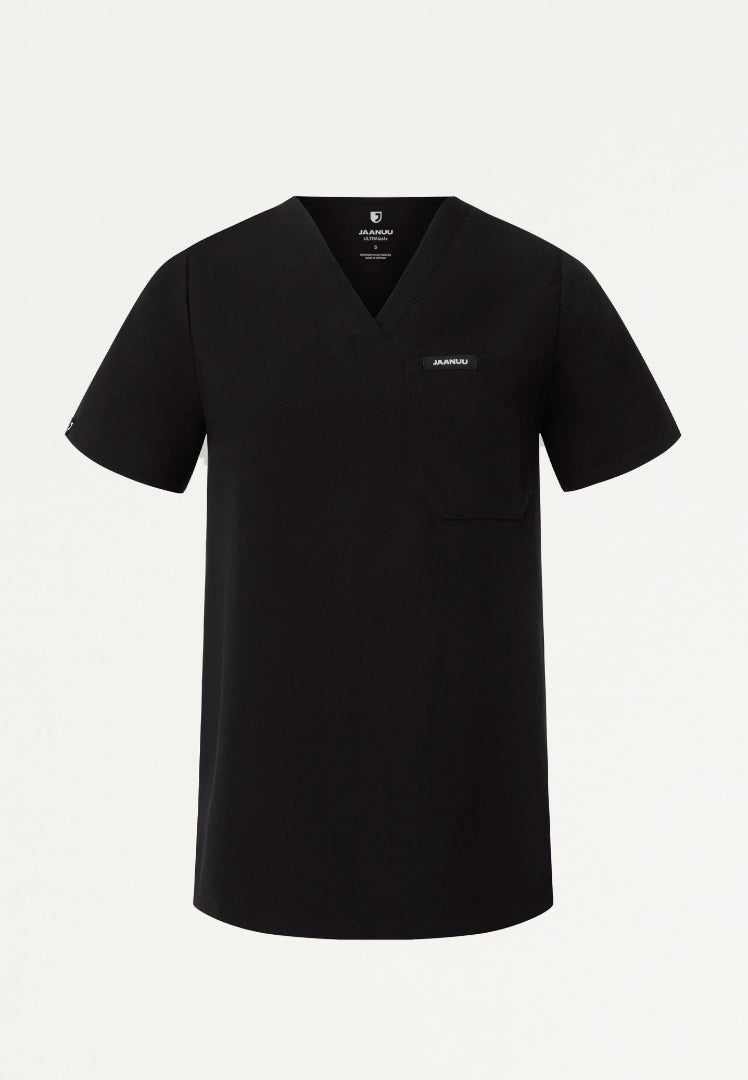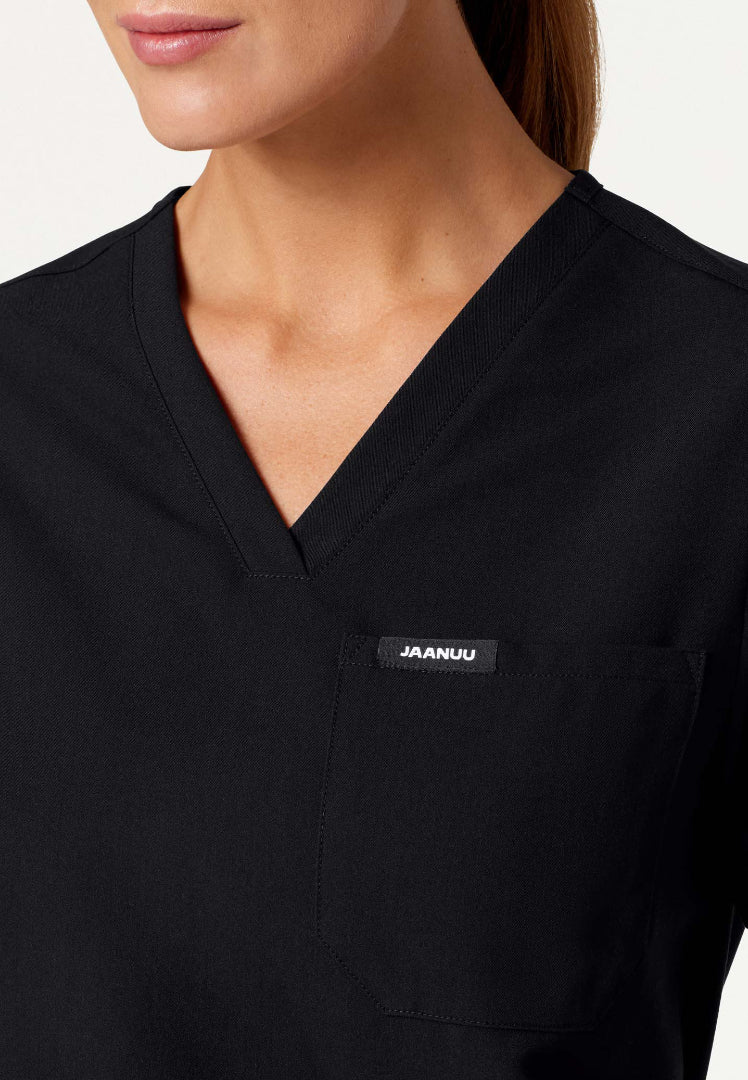 La blusa médica Rhena Essential de un bolsillo para mujer de JAANUU en negro ofrece sofisticación profesional con comodidad para el día a día, lo que la convierte en la base perfecta para tu guardarropa médico. Esta blusa médica, cuidadosamente diseñada, combina un estilo favorecedor con una funcionalidad práctica para que luzcas impecable durante tus turnos más exigentes.