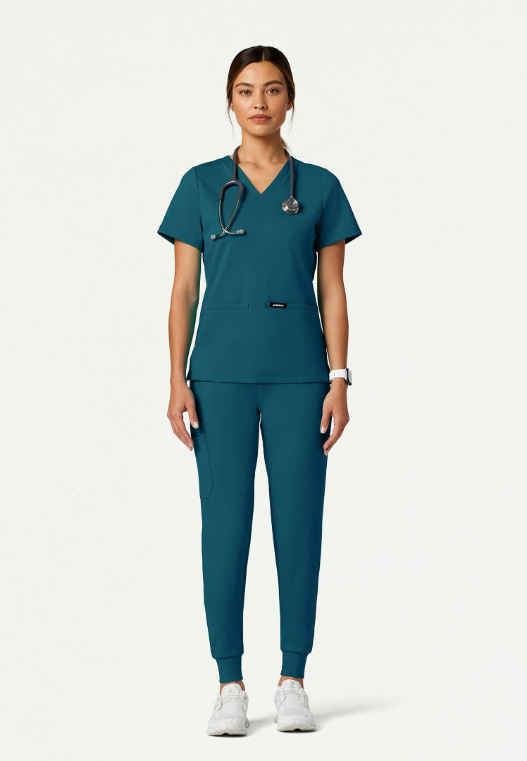 Diseñado por expertos para combinar con las batas médicas JAANUU UltraSOFT™, este Azul Caribe Rubí crea un conjunto que ilumina cualquier entorno sanitario. Ya sea que trabajes en pediatría, medicina familiar o atención de bienestar, el tono tropical Azul Caribe crea una atmósfera positiva y sanadora, mientras que la tecnología de confort ultrasuave respalda tu compromiso de brindar alegría y energía a una atención sanitaria excepcional.