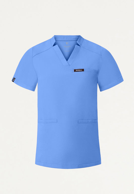Helia Slim Notched V-Neck Scrub Top - Ciel Blue