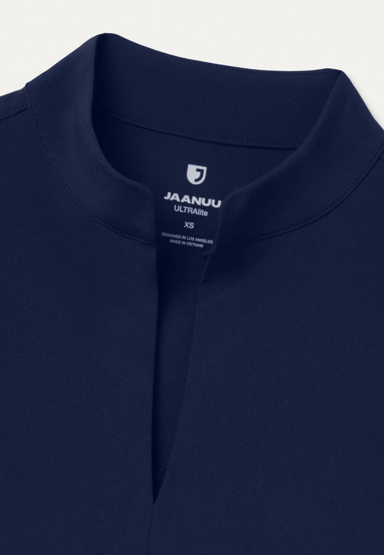 The JAANUU Aria Fit & Flare UltraLITE™ Scrub Top in distinguished Midnight Navy brings timeless authority with a barely-there feel that transforms your medical uniform experience. This ultra-lightweight scrub top features JAANUU's revolutionary lightest fabric ever, creating a sophisticated silhouette that exudes confidence in any healthcare setting.