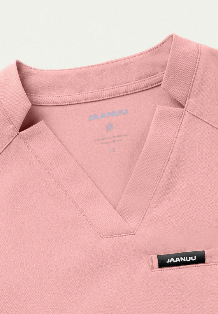 The JAANUU Women's Helia Notched V-Neck Scrub Top in Mauve elevates your everyday workwear with its signature design and revolutionary fabric technology. This professional scrub top features the distinctive notched v-neckline that has become synonymous with Jaanuu's sophisticated aesthetic and functional design philosophy.