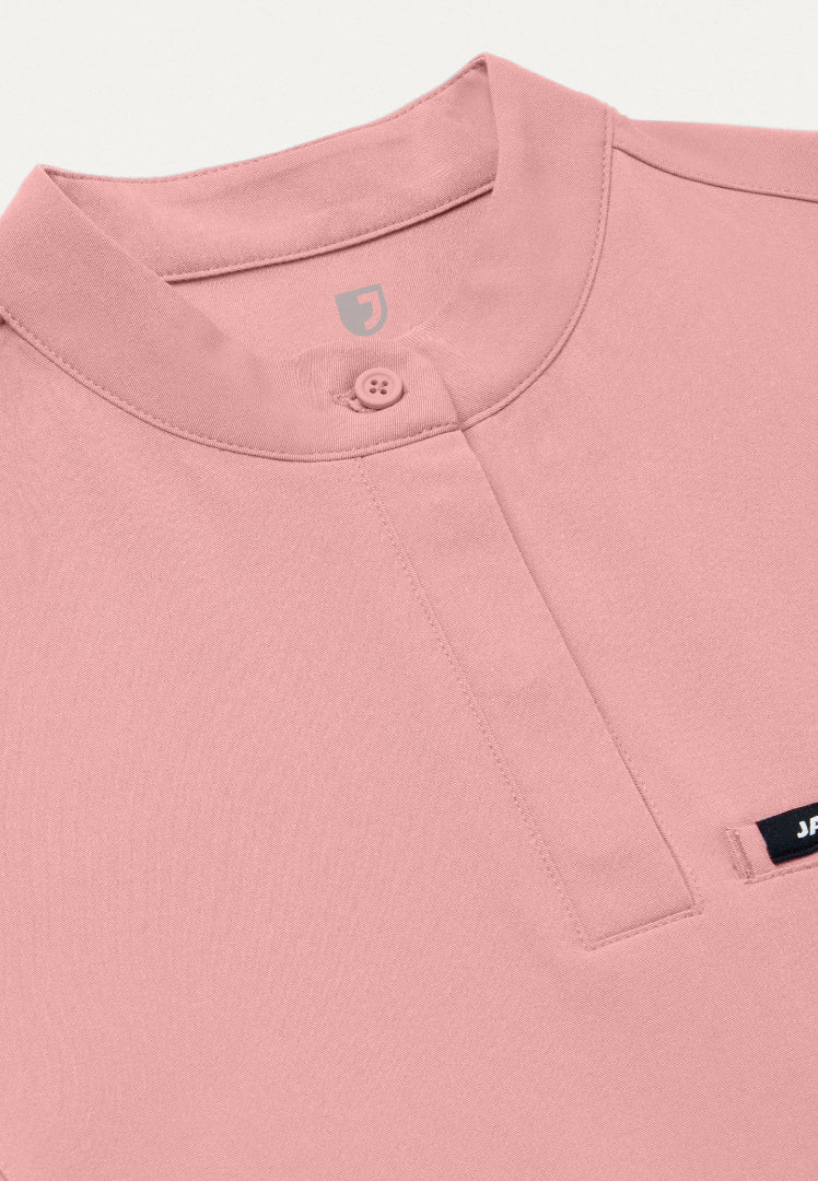 The JAANUU Women's Savi Tuck-In Stand Collar Scrub Top in elegant Mauve brings sophisticated femininity with refined professionalism that creates a graceful, distinguished presence in any healthcare setting. This essential scrub top features a classic fit enhanced with elegant details including a beautiful banded stand collar and hidden button closure that creates a refined, sophisticated appearance perfect for specialized care environments.