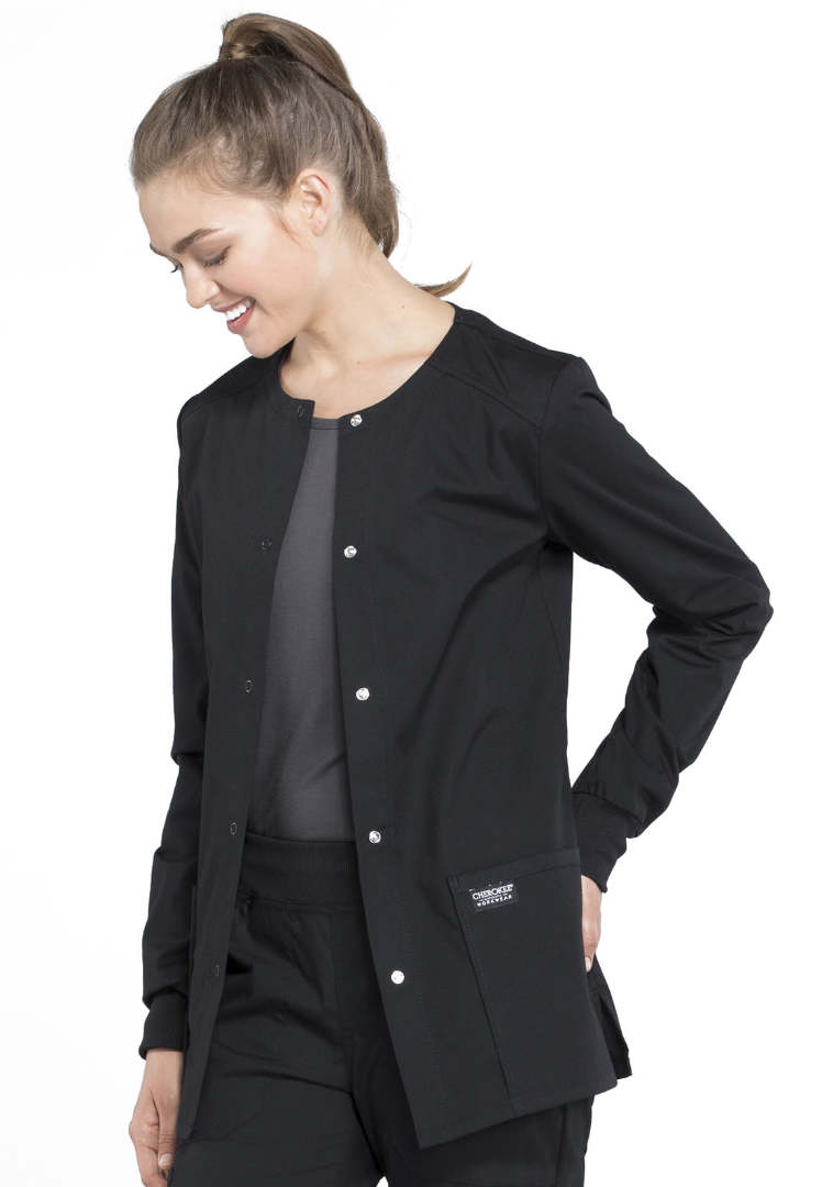 - Cherokee Workwear Professionals Women's Snap Front Jacket - Black - XS