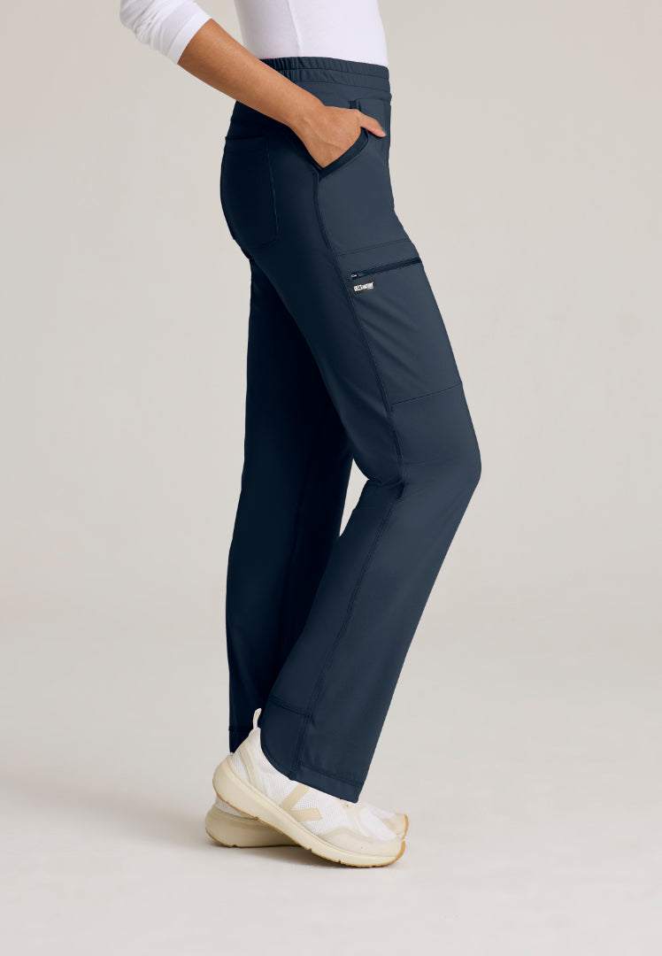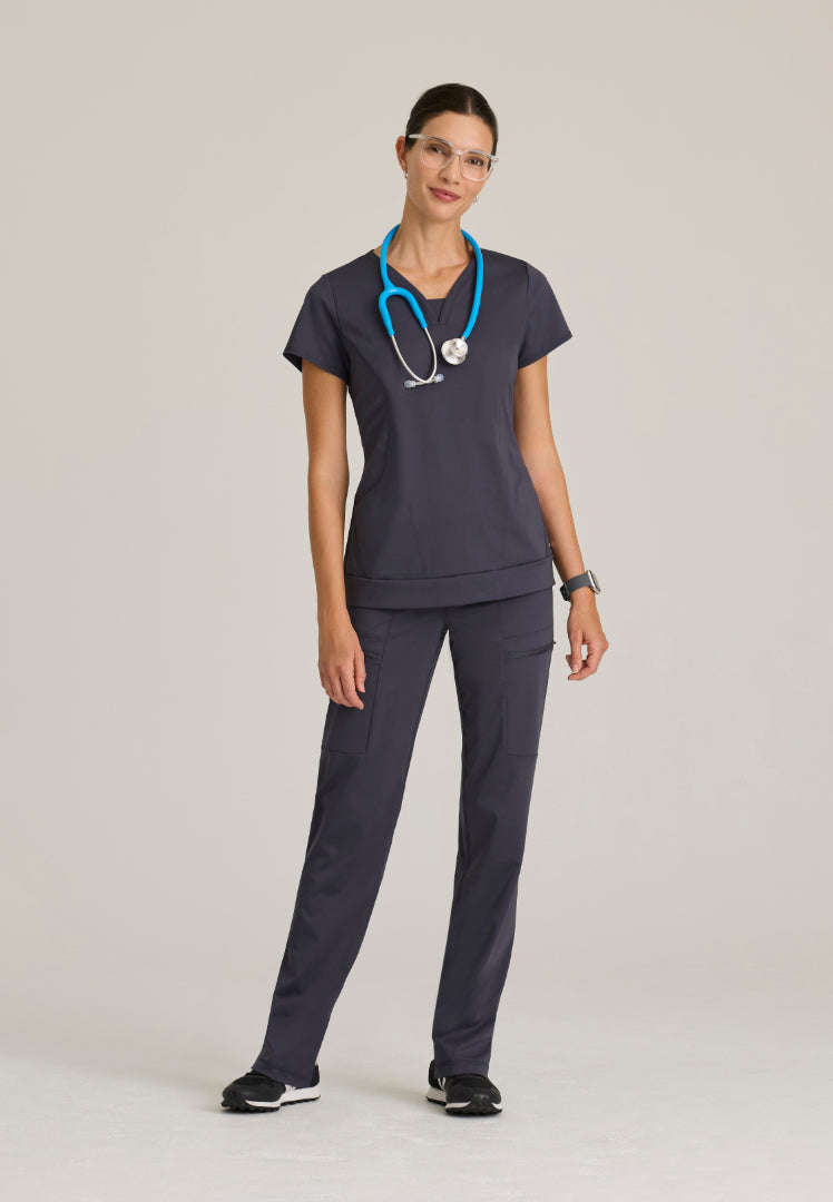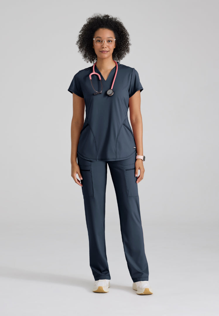 Experience the perfect combination of form and function with our Momentum 6-Pocket Straight Leg Pant in Steel! Crafted with you in mind, these high-rise scrubs feature a flat front waistband with a convenient drawcord for the perfect fit. With a straight leg design and six pockets in total - including two slanted front pockets and two cargo pockets with hidden zippers - these pants blend style with practicality. Plus, their antimicrobial properties keep you fresh and confident throughout your shift.