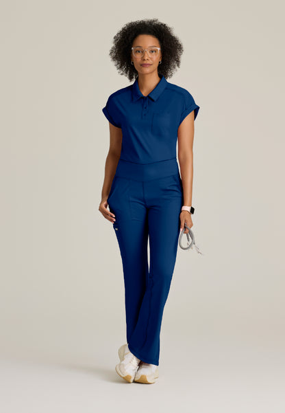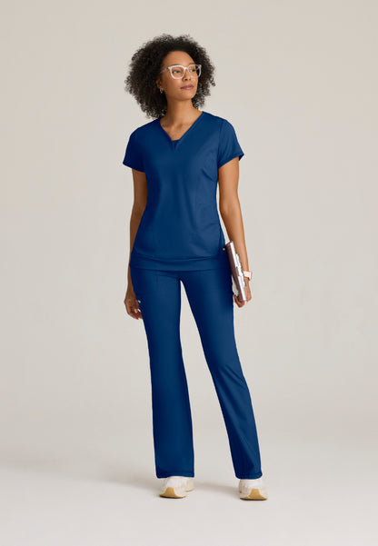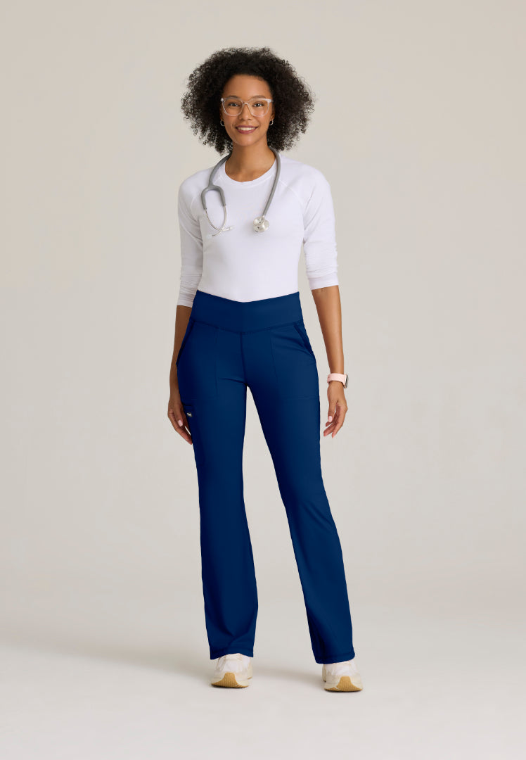 The Swift 5-Pocket V-Waistband Scrub Pant in Indigo – where comfort meets functionality! Designed with a flattering fit & flare silhouette, these high-rise pants feature a stylish V-front waistband for a modern touch. With five pockets in total, including front slash pockets, a convenient welt pocket, and two back pockets, you'll have plenty of space to carry your essentials. Plus, the antimicrobial fabric ensures you'll stay fresh even during the busiest shifts. Elevate your workwear with swift ease and style!