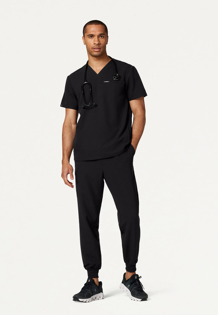 The JAANUU Men's Osmo 8-Pocket Scrub Jogger in Black combines professional healthcare functionality with athletic-inspired comfort in a sleek, modern design. Engineered for healthcare professionals who demand both performance and style, this innovative scrub jogger delivers exceptional comfort during long shifts while maintaining a polished, professional appearance.