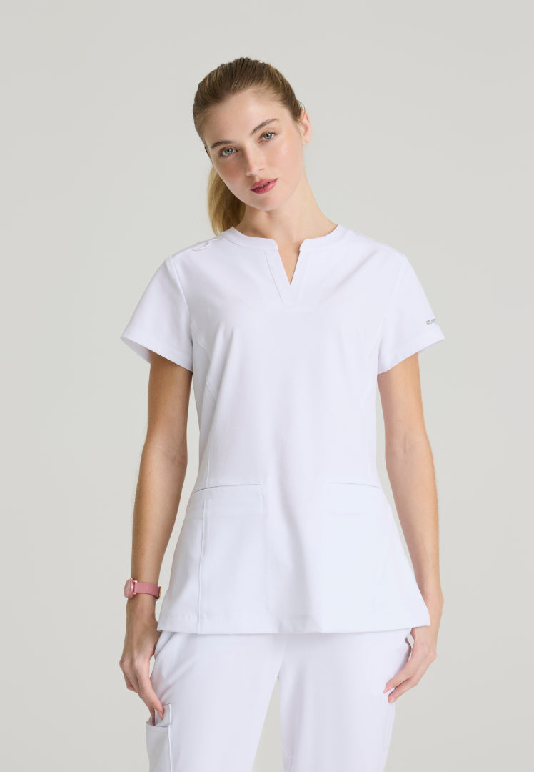 Line Drawing for Coast Banded Collar Scrub Top - White