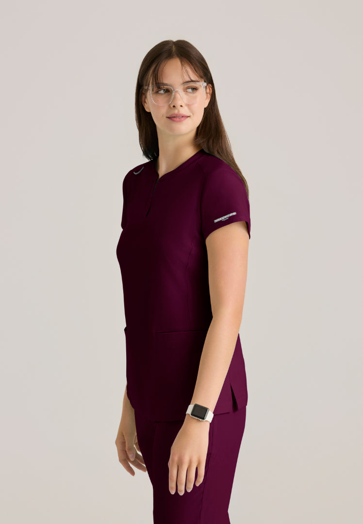 Coast Banded Collar Scrub Top - Wine
