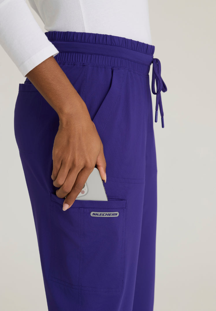 Welcome to the comfort zone with Skechers Slip-in's by Barco Reach Pants in Brilliance. Featuring our innovative Comfort Knit fabric, these pants are crafted for durability and flexibility with a high-stretch nylon and spandex, giving you the feel of your favorite athleisure wear. With four pockets, a shirred elastic waistband, slanted front pockets with shadow topstitching, as well as moisture wicking, they offer both functionality and flair.
